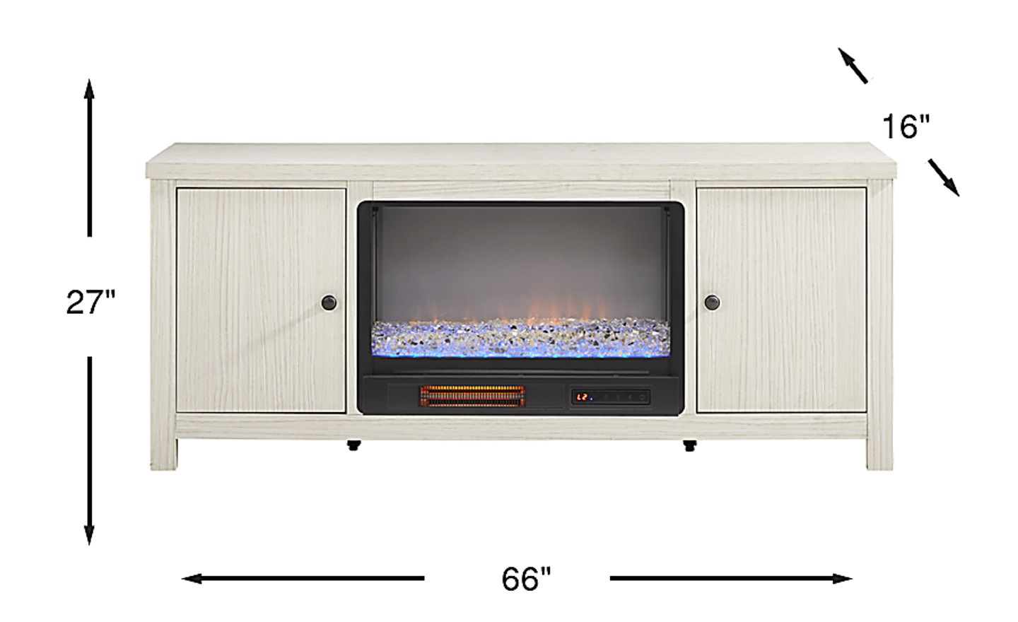 Effortlessly stylish and thoughtfully designed, the High Mountain collection makes it easy to stay organized and fully immersed in your home entertainment space. This contemporary console features a silky white finish and a handsome square-shaped frame that delivers a timeless, grounded look. Rear wire management holes in the dual cabinets provide a clutter-free setup, while adjustable shelves offer flexible storage to support your organization needs. At the center, an energy-saving LED firebox provides remote-controlled heat and ambient lighting with four color-changing options, creating a warm and cozy atmosphere at the touch of a button.