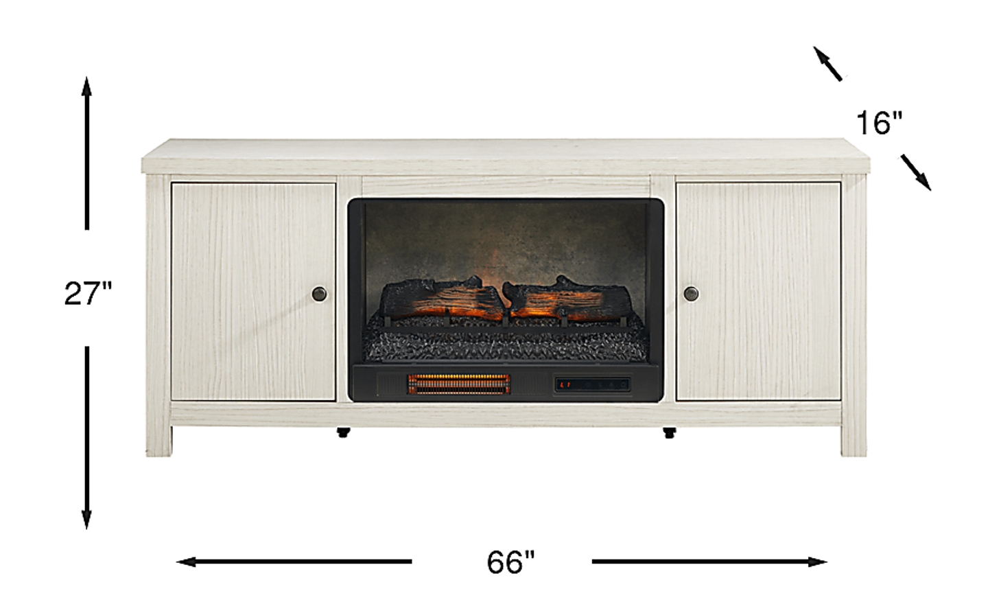Effortlessly stylish and thoughtfully designed, the High Mountain collection makes it easy to stay organized and fully immersed in your home entertainment space. This contemporary console features a silky white finish and a handsome square-shaped frame that delivers a timeless, grounded look. Rear wire management holes in the dual cabinets provide a clutter-free setup, while adjustable shelves offer flexible storage to support your organization needs. At the center, a removable log fireplace with flickering flames and faux embers, working with or without heat for a warm ambiance year-round.