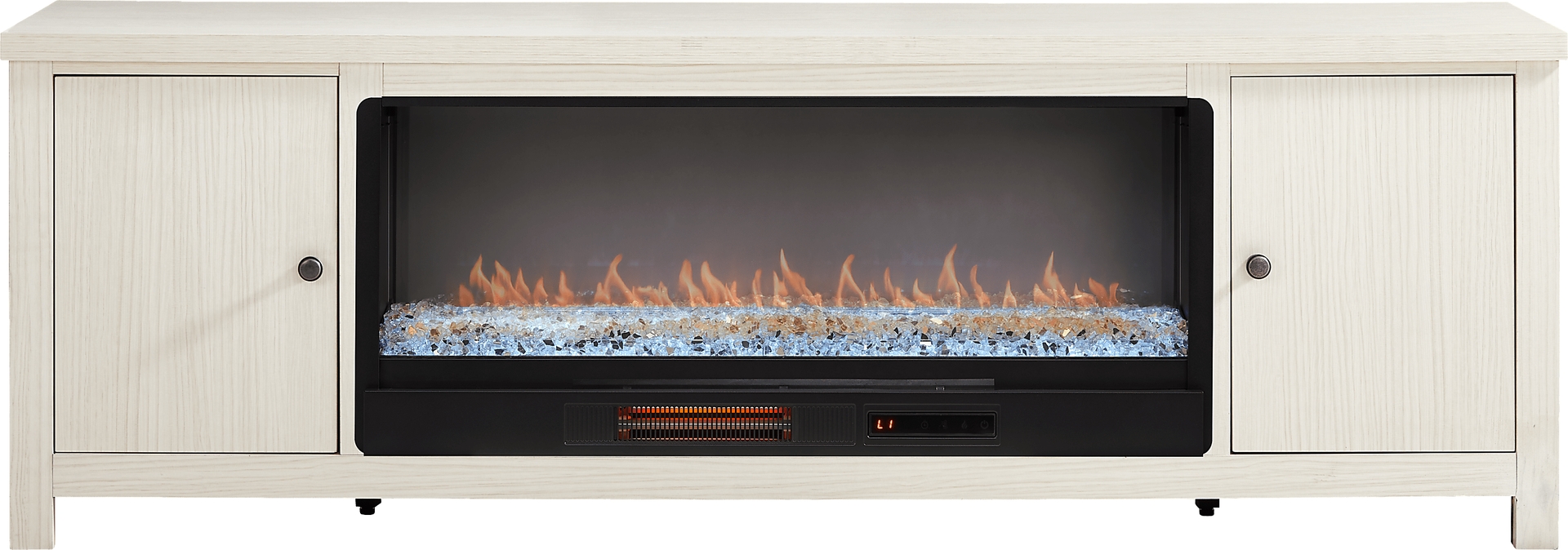 Effortlessly stylish and thoughtfully designed, the High Mountain collection makes it easy to stay organized and fully immersed in your home entertainment space. This contemporary console features a silky white finish and a handsome square-shaped frame that delivers a timeless, grounded look. Rear wire management holes in the dual cabinets provide a clutter-free setup, while adjustable shelves offer flexible storage to support your organization needs. At the center, an energy-saving LED firebox provides remote-controlled heat and ambient lighting with four color-changing options, creating a warm and cozy atmosphere at the touch of a button.