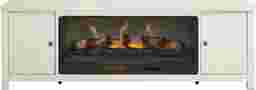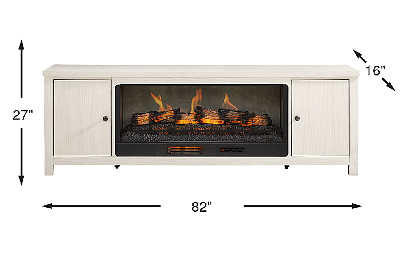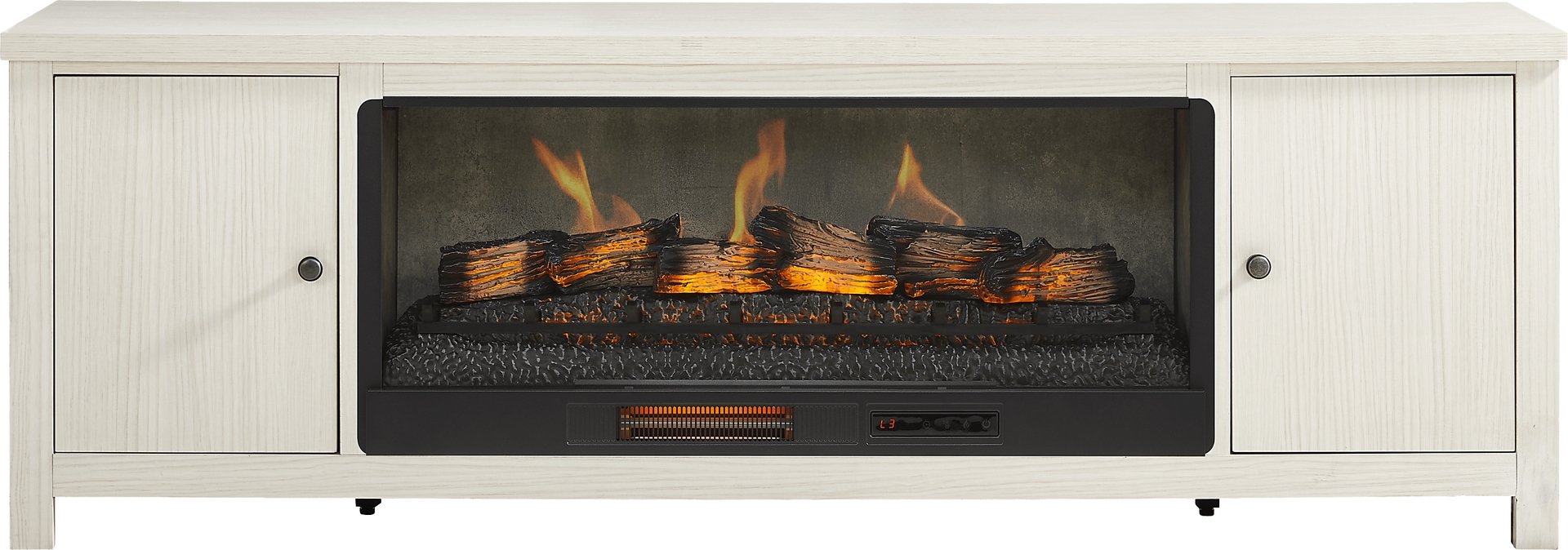Effortlessly stylish and thoughtfully designed, the High Mountain collection makes it easy to stay organized and fully immersed in your home entertainment space. This contemporary console features a silky white finish and a handsome square-shaped frame that delivers a timeless, grounded look. Rear wire management holes in the dual cabinets provide a clutter-free setup, while adjustable shelves offer flexible storage to support your organization needs. At the center, a removable log fireplace with flickering flames and faux embers, working with or without heat for a warm ambiance year-round.