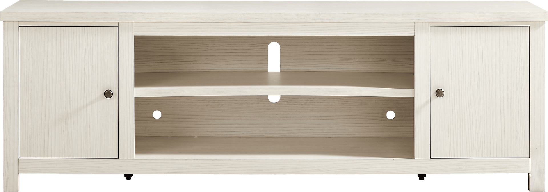 Effortlessly stylish and thoughtfully designed, the High Mountain collection makes it easy to stay organized and fully immersed in your home entertainment space. This contemporary console features a silky white finish and a handsome square-shaped frame that delivers a timeless, grounded look. Rear wire management holes in the dual cabinets provide a clutter-free setup, while adjustable shelves offer flexible storage to support your organization needs. At the center, an open shelf provides plenty of display space for your entertainment essentials.