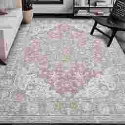 A 9' x 13' rug is considered an oversized piece, making it an ideal choice for anchoring large living rooms or defining zones in open-concept layouts. For a cohesive look, our design experts suggest ensuring that at least the front legs of all major furniture pieces—such as sofas and accent chairs—rest on the rug. In a bedroom, this size provides generous coverage under a king-sized bed, allowing the soft vintage pattern to extend past the sides and foot of the bed for a balanced, luxurious feel.