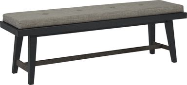 Urban rustic styling and chic tailored touches combine to create the Hill Creek dining room. Crafted with oak veneers, the collection has a rubbed black finish. Perfect for gathering family and friends, the 41 x 76 inch table features a plank style top and supportive trestle base. Wonderfully detailed side chairs feature tufted gray linen-style upholstery along with decorative nailhead trim.