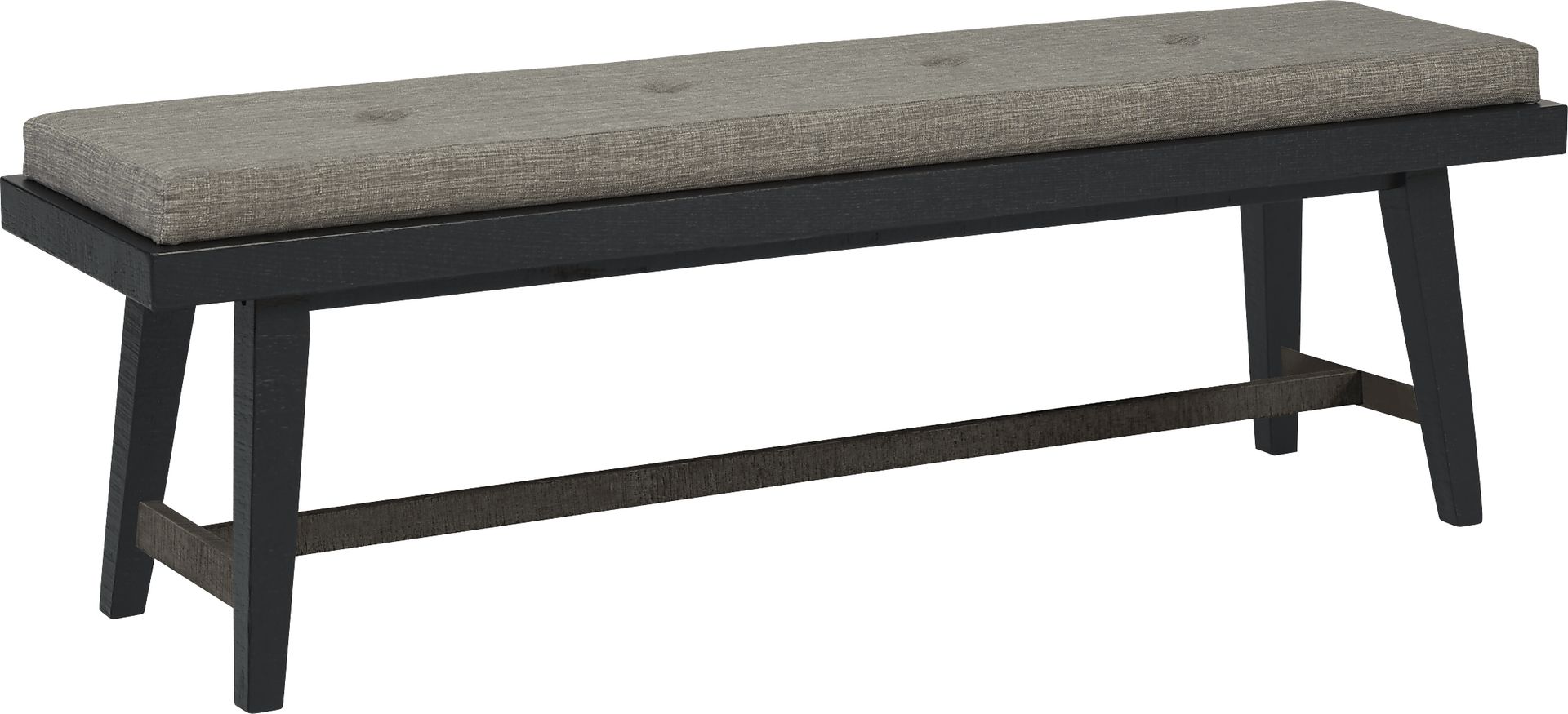 Take a contemporary approach to dining room seating with the Hill Creek bench. This casual choice accommodates two people comfortably thanks to the padded seat upholstered in chic gray linen-style fabric. The base and tapered legs are made with wood solids and oak veneers in a rubbed black finish.
