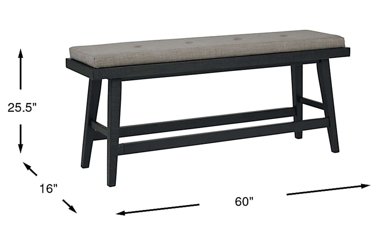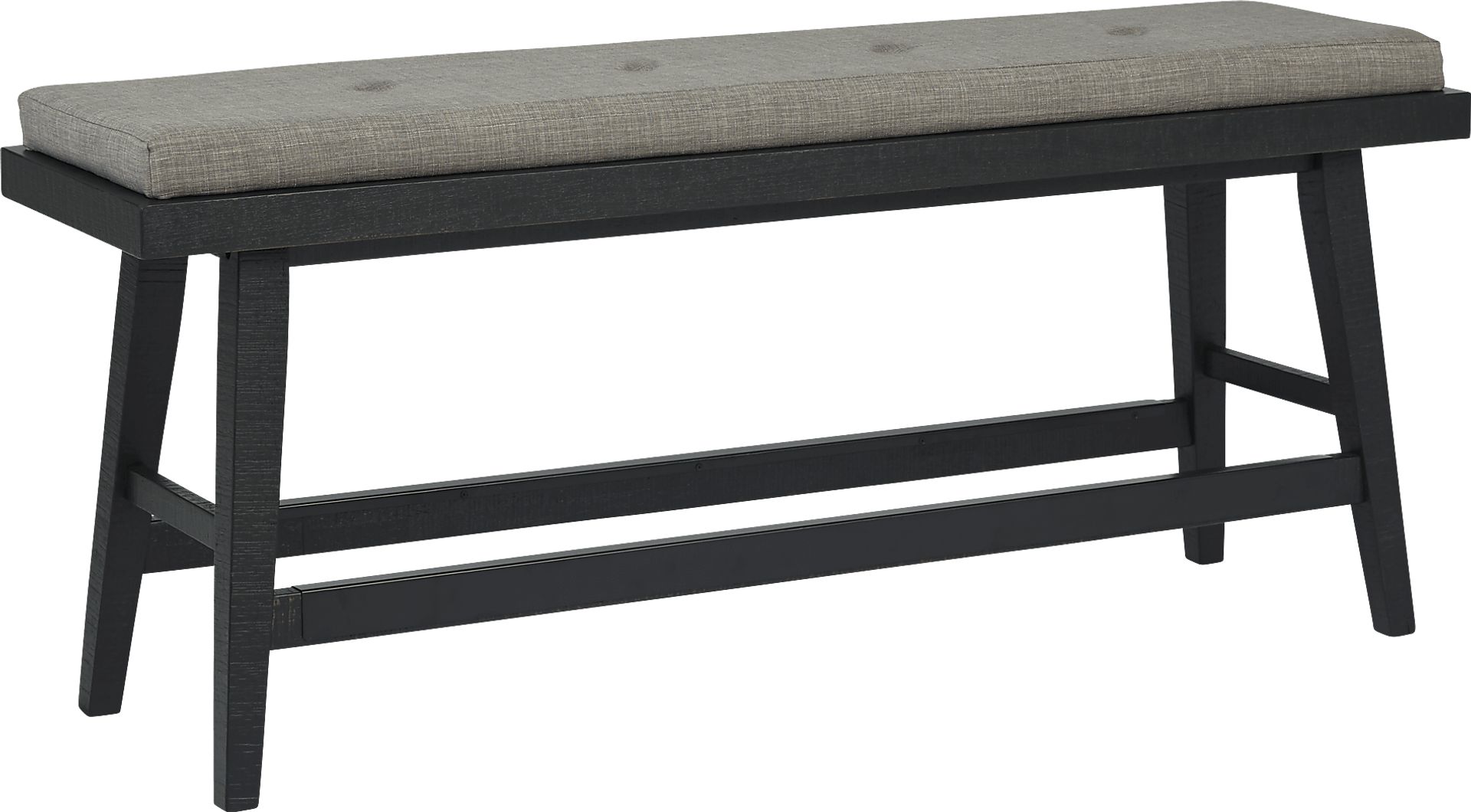 Casual and contemporary, the Hill Creek counter height bench offers a fun option for dining room seating. This cozy choice accommodates two people comfortably thanks to the padded seat upholstered in chic gray linen-style fabric. The base, tapered legs and stretchers are made with oak veneers in a rubbed black finish.
