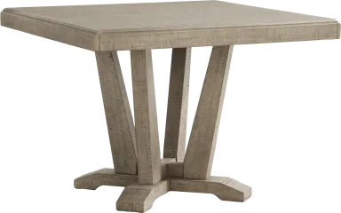 Serving urban rustic styling and chic tailored touches, the Hill Creek collection offers a wonderful gathering place. Crafted with oak veneers, this dining room has a weathered natural finish. Perfect for any meal, the square table features a plank style top and supportive pedestal base.