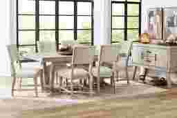 Any meal becomes a special occasion when seated at the Hill Creek dining table. This contemporary piece features a 41 x 76 inch plank top supported by a trestle base. The chic look of the table is completed with oak veneers in a weathered natural finish.