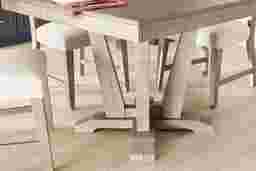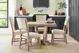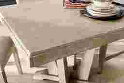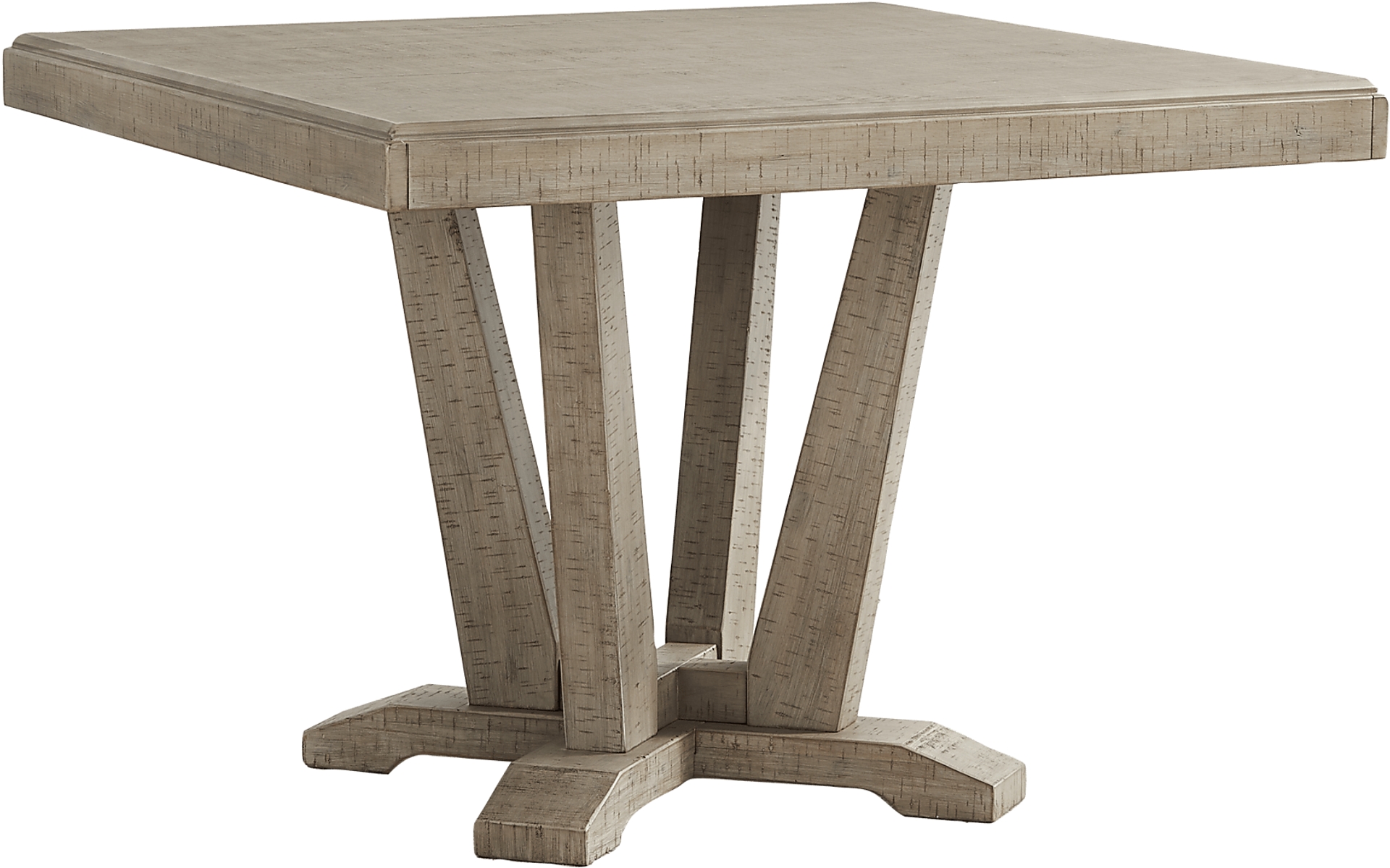 Serving urban rustic styling and chic tailored touches, the Hill Creek collection offers a wonderful gathering place. Crafted with oak veneers, this dining room has a weathered natural finish. Perfect for any meal, the square table features a plank style top and supportive pedestal base.