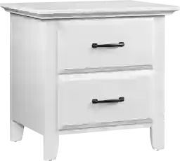 The Hillford nightstand is the perfect surface to rest a book lamp or clock inside your babys nursery. This nightstand features two spacious drawers for excellent storage and has beautiful metal pulls. This nightstand is comes in a beautiful clean white finish with fine detail for a signature look inside your little ones room. Customer assembly is required.
