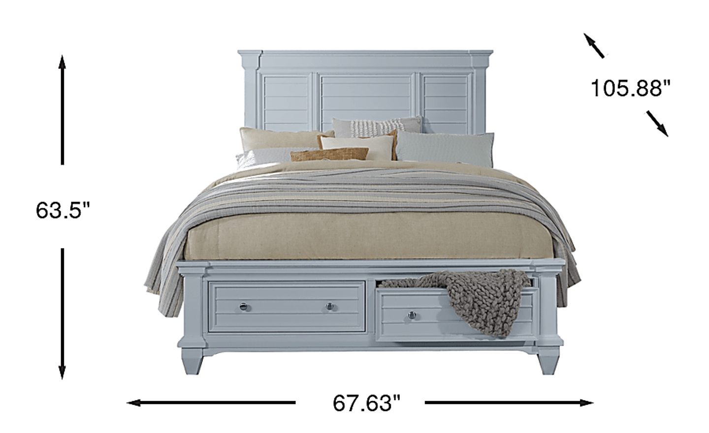 Hilton Head Blue 3 Pc Queen Panel Bed With Storage