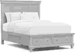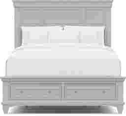 This bed is expertly designed for maximum organization, featuring built-in drawers integrated directly into the footboard. These drawers are accented with refined bead moulding and provide a convenient solution for storing extra linens, seasonal blankets, or bulky clothing without requiring the footprint of an additional dresser.
