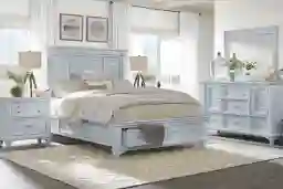 The light blue finish and bead moulding are specifically designed to evoke a fresh, casual vibe perfect for coastal environments. In humid regions, we recommend utilizing the reversible rails to set the mattress at a higher position. This adjustment increases airflow underneath and around the mattress, which is a key maintenance strategy for preventing moisture buildup in damp or seaside locations.