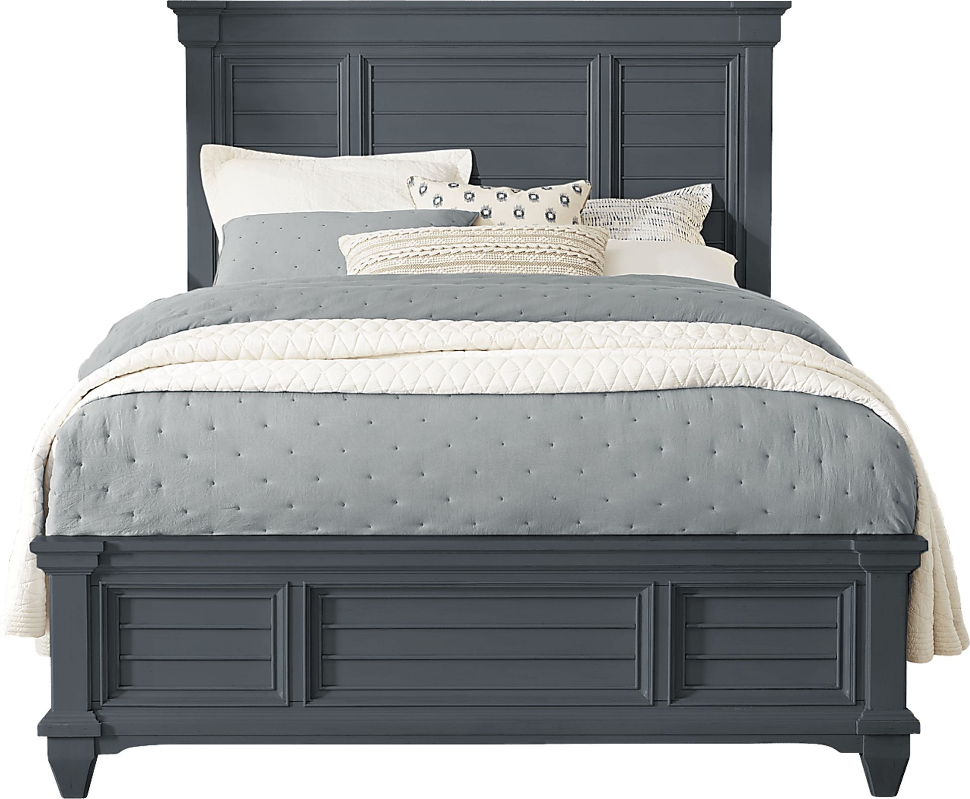 Relax at the end of the day in the serenity of the stylish Hilton Head panel bed. This cottage style bed features a shutter look on the headboard and footboard created by bead moulding. The graphite finish makes it decorator friendly and gives the bed a casual vibe. Reversible rails allow the height of the mattress to be raised or lowered. Mattress and foundation (if required) sold separately.