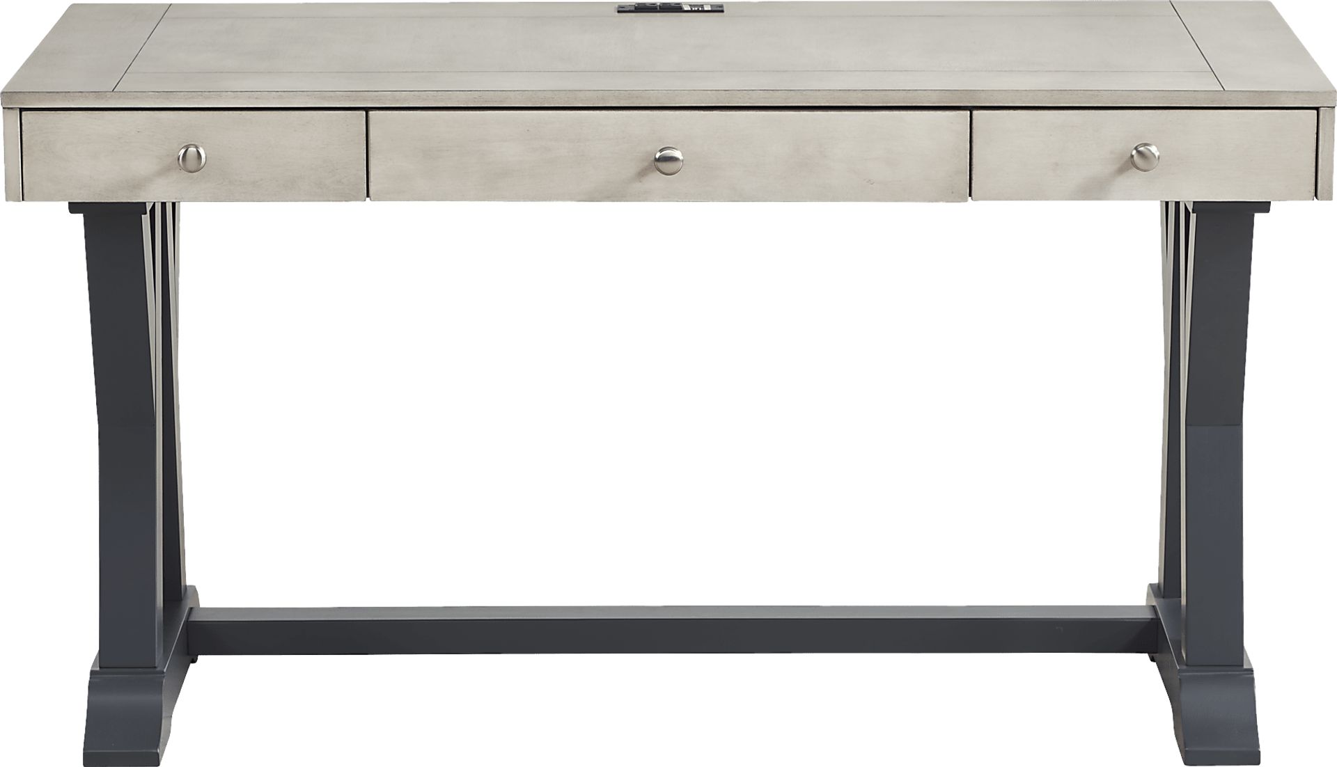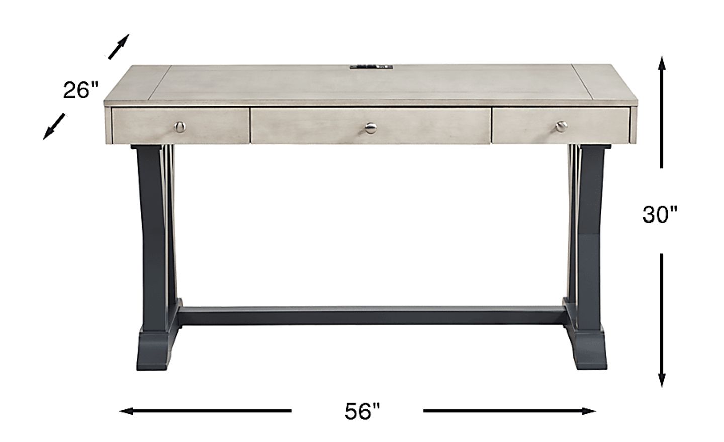 To help you stay organized, this desk features three built-in drawers. These provide ample space for storing notebooks, stationery, and other essential work-from-home supplies. Each drawer is finished with a stylish silver-tone knob that complements the contemporary graphite and gray aesthetic.