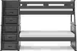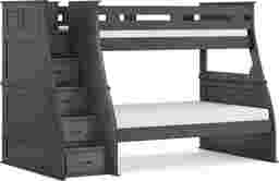 Complete your child's room with the cool and convenient Hilton Head bunk. With a classic design that features a unique shutter look and a beautiful graphite finish, this bunk is sure to be a hit. The bunk has a twin over full configuration provides ample space for two kids and an optional storage trundle can add an extra bed for sleepovers or additional storage. This bunk swaps the ladder for stylish steps that have built-in storage drawers. This product requires a bunkie board (sold separately) Mattress and foundation (if required) sold separately.