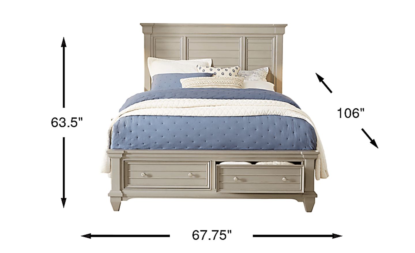 Relax at the end of the day in the serenity of the stylish Hilton Head storage bed. This cottage style bed features a shutter look on the panel headboard and footboard created by bead moulding. The gray finish makes it decorator friendly and gives the bed a casual vibe. Reversible rails allow the height of the mattress to be raised or lowered. Drawers built into the footboard provide room for extra linens and blankets. Mattress and foundation (if required) sold separately.