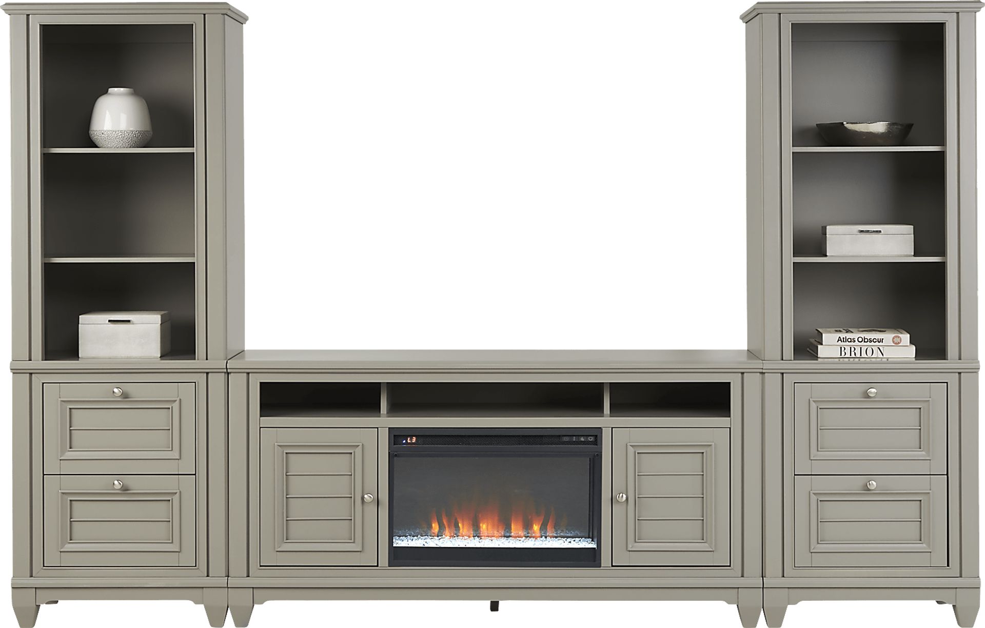 Hilton Head Gray 4 Pc Wall Unit With 66 In. Console And Electric Fireplace