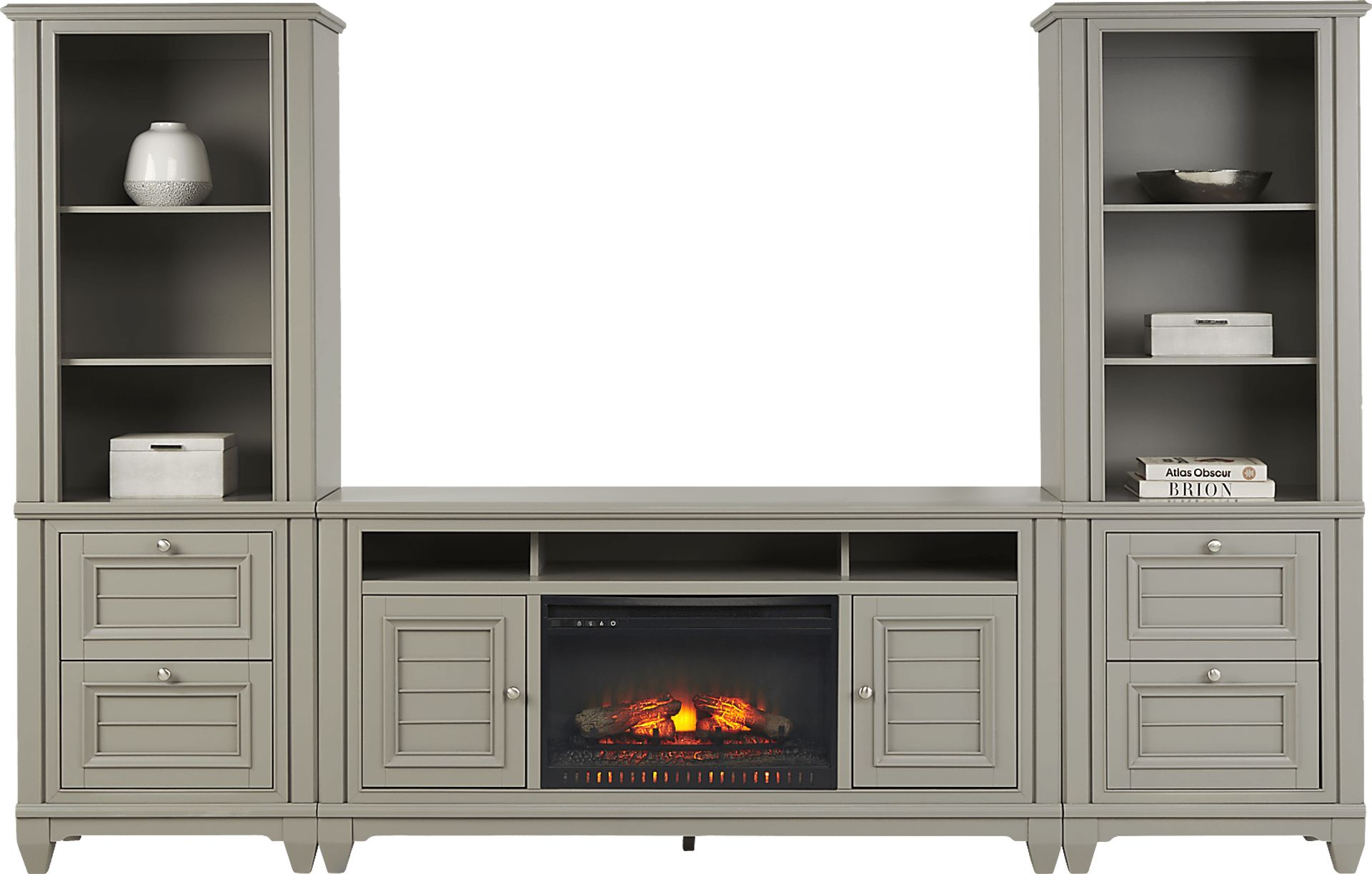 Hilton Head Gray 4 Pc Wall Unit With 66 In. Console And Electric Log Fireplace