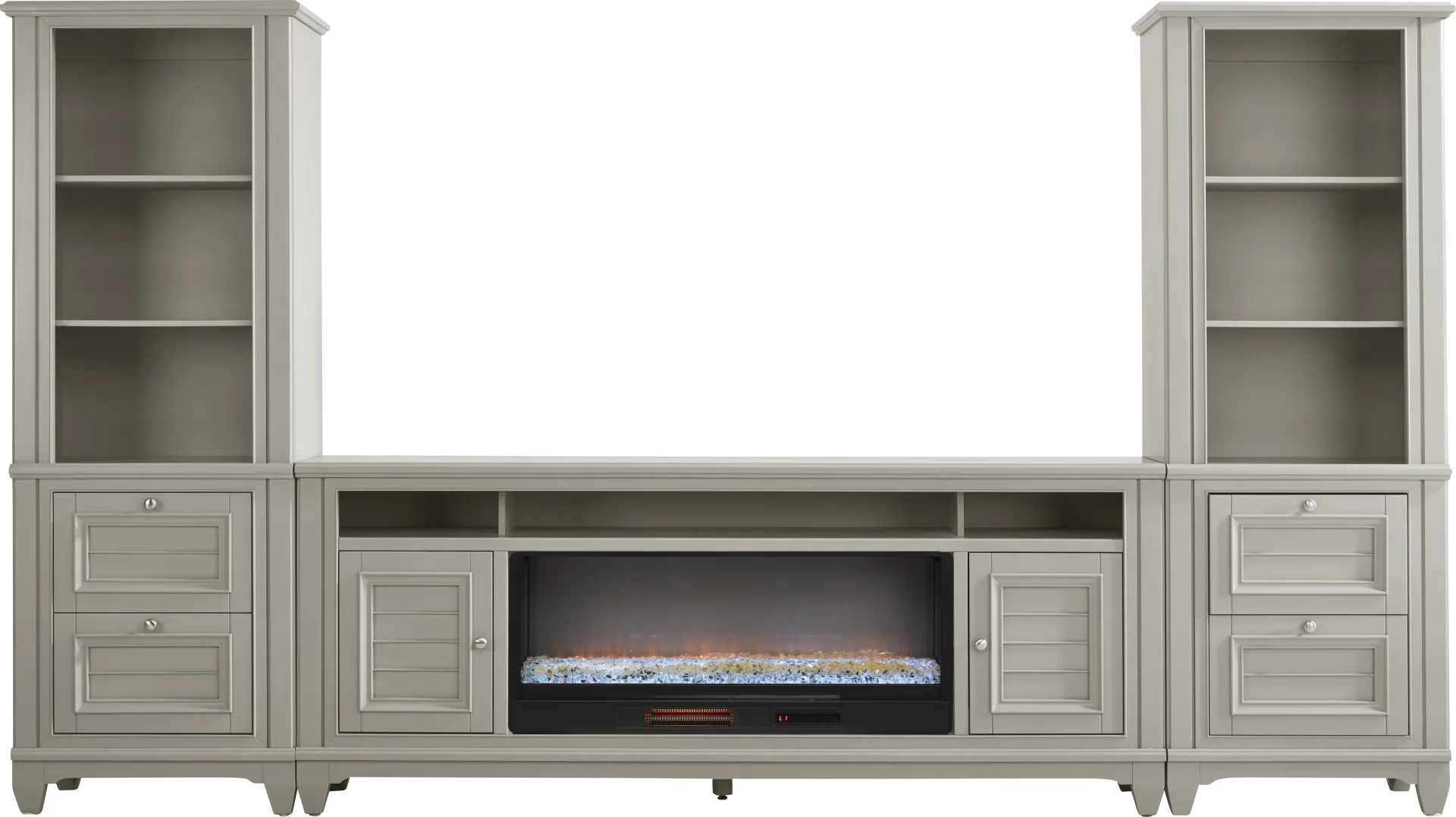 Hilton Head Gray 4 Pc Wall Unit With 82 In. Console And Electric Fireplace
