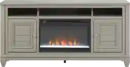 Center your home entertainment space with the coastal style of the Hilton Head console. This piece is perfect for your TV, sound system and any additional media devices you want to keep organized. This console comes in a versatile gray color and features three storage cubbies that are great for cable boxes or Blu-ray players along with two cabinets to keep additional cables or discs safely tucked away. The included fireplace portion features an energy-saving LED firebox with remote controlled heat and ambient lighting that you and your guests will love.