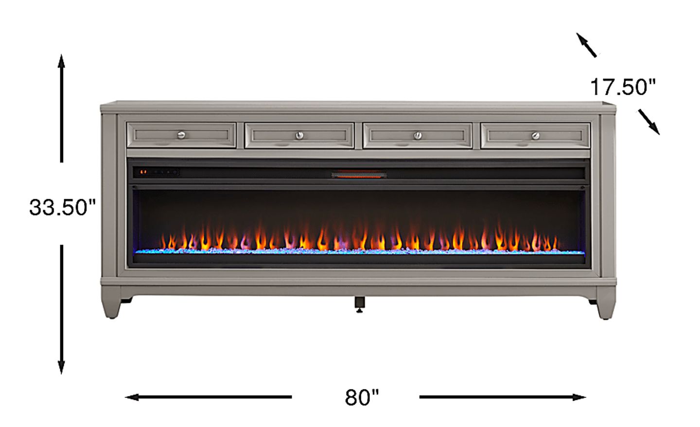 Stylish and casual, the Hilton Head collection is perfect for your TV, sound system and any additional media devices you want to keep organized. Contemporary in style, this console comes in a beautiful gray finish and features four drawers that's great for storing your entertainment essentials. The energy-saving LED firebox provides remote-controlled heat and ambient lighting with four color-changing options, creating a warm and cozy atmosphere at the touch of a button. Silver metal knobs complete the look with an elegant touch.
