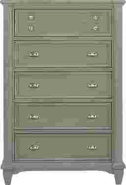 Classic cottage styling and a lovely gray finish make the Hilton Head chest an eye pleasing and practical addition to your bedroom. Five drawers are crafted with strong English and French dovetail construction and completed with brushed nickel hardware.