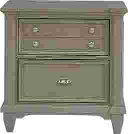 The Hilton Head nightstand makes a charming bedside companion with modern connectivity. Two deep drawers keep your necessities close at hand (the top drawer is crafted to look like two drawers but is one spacious drawer). To keep electronic devices charged, two USB ports and two power outlets are located behind the upper back of the nightstand. Each drawer is made using English and French dovetail construction for strength and stability. Crafted with a chic gray finish, this lovely piece is enhanced with brushed nickel hardware.