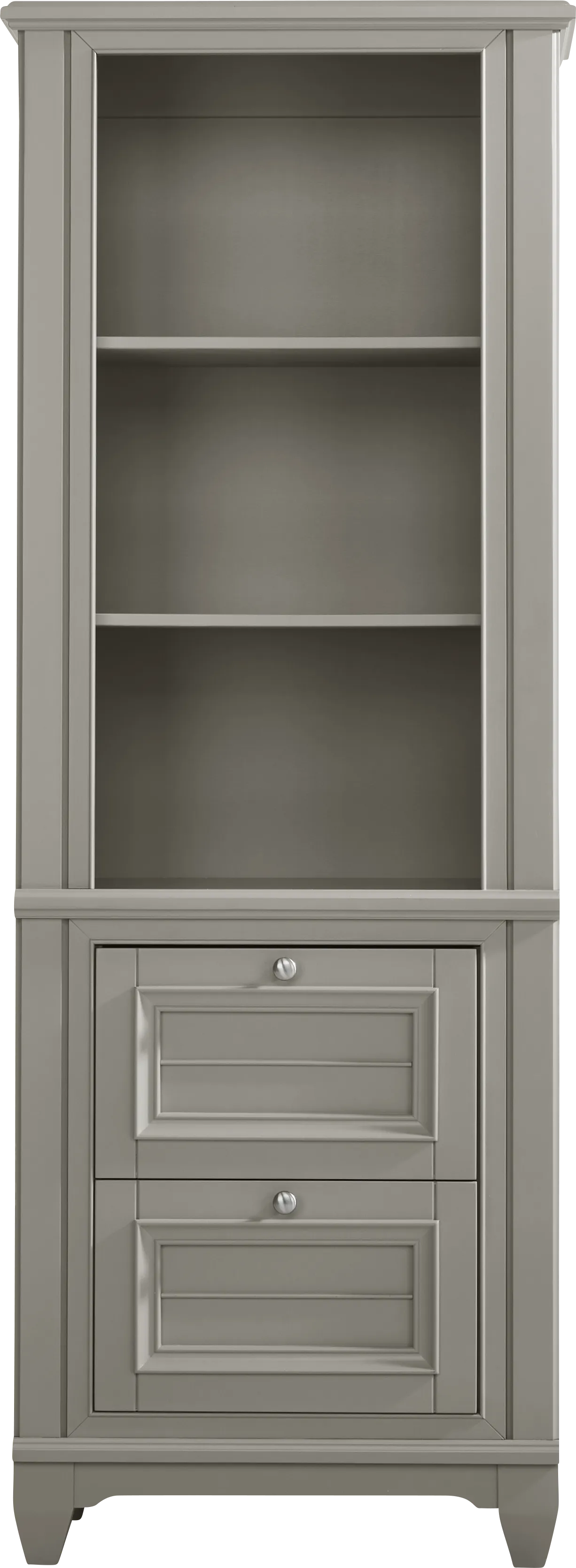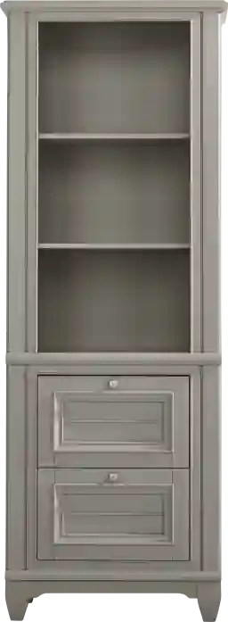 The contemporary gray finish and classic silhouette make this a highly versatile anchor piece. Based on our interior styling expertise, this shade of gray pairs beautifully with a "cool-toned" palette, such as navy blues and crisp whites, for a modern aesthetic. To add warmth, you can layer the shelves with organic elements like small indoor plants or wooden decorative accents.