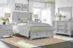 Relax at the end of the day in the serenity of the stylish Hilton Head panel bed. This cottage style bed features a shutter look on the headboard and footboard created by bead moulding. The light blue finish gives the bed a fresh casual vibe. Reversible rails allow the height of the mattress to be raised or lowered. Mattress and foundation (if required) sold separately. Bed shown is queen size.