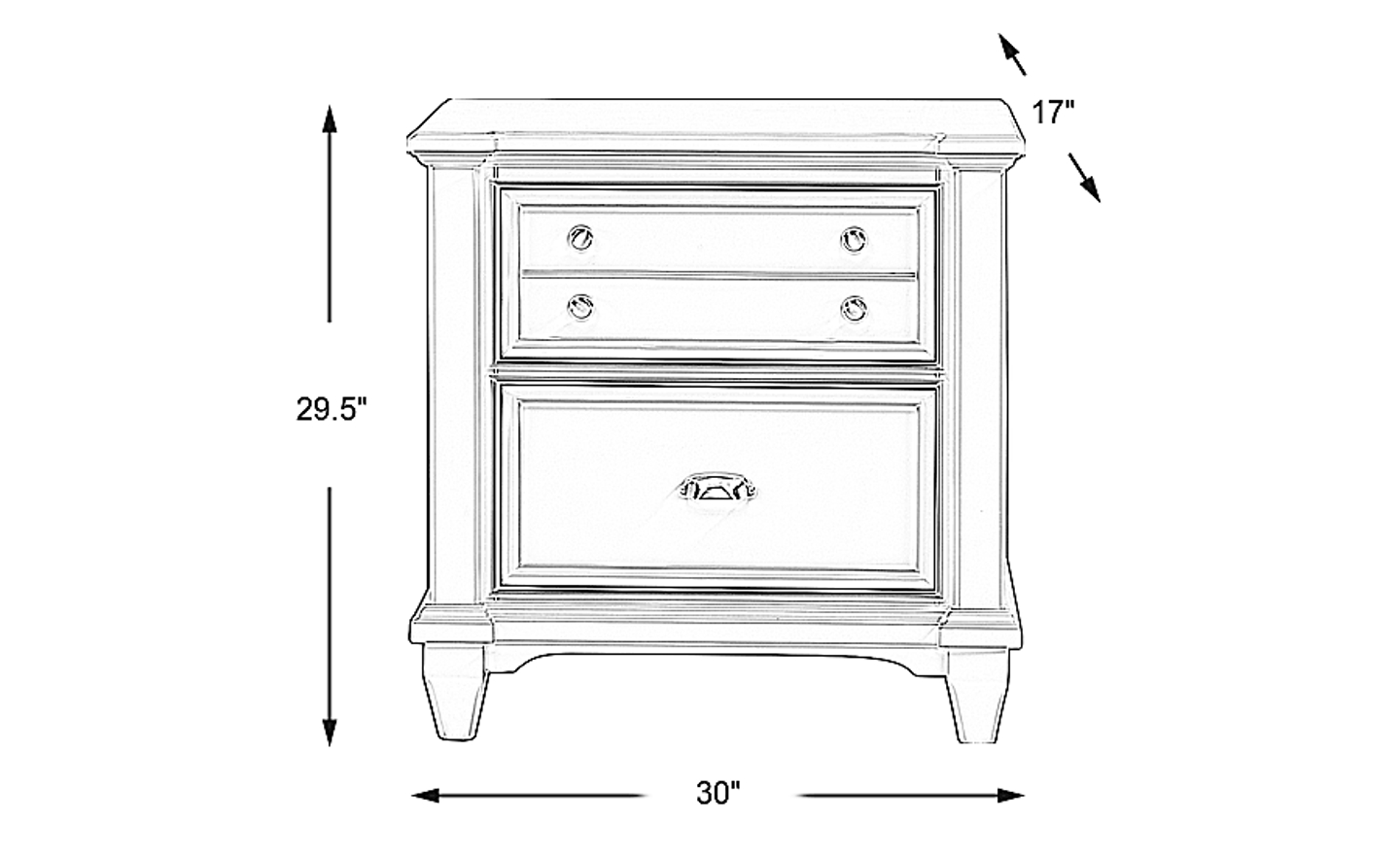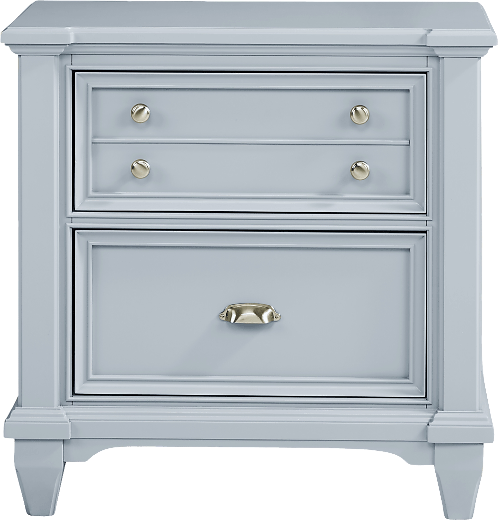The Hilton Head nightstand makes a charming bedside companion with modern connectivity. Two deep drawers keep your necessities close at hand (the top drawer is crafted to look like two drawers but is one spacious drawer). To keep electronic devices charged, two USB ports and two power outlets are located behind the upper back of the nightstand. Each drawer is made using English and French dovetail construction for strength and stability. Crafted with a fresh mint green finish, this lovely piece is enhanced with brushed nickel hardware.