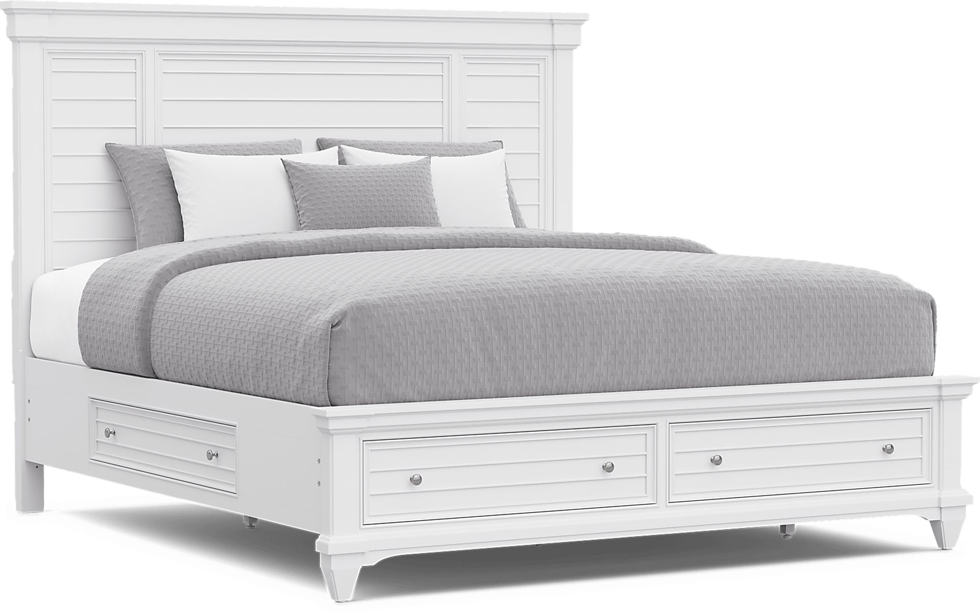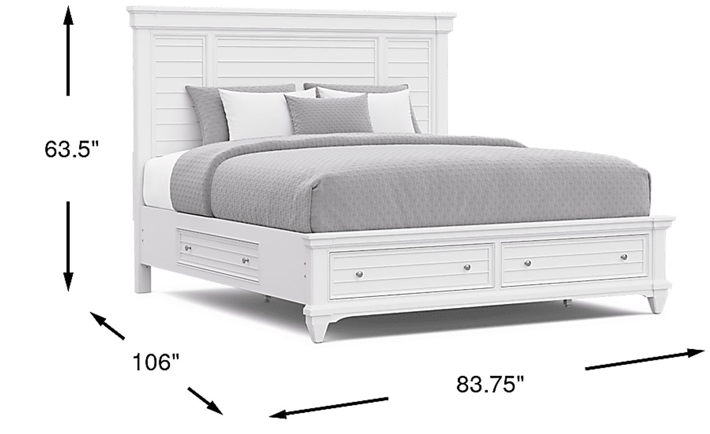 The casual cottage styling and crisp white finish of this panel bed make it an ideal centerpiece for coastal-inspired homes. To ensure your stored items remain fresh in humid regions, we recommend only placing fully dry linens in the footboard drawers. The "shutter look" bead moulding on the headboard and footboard provides a breezy, nautical aesthetic that complements the light and airy vibe of seaside decor.
