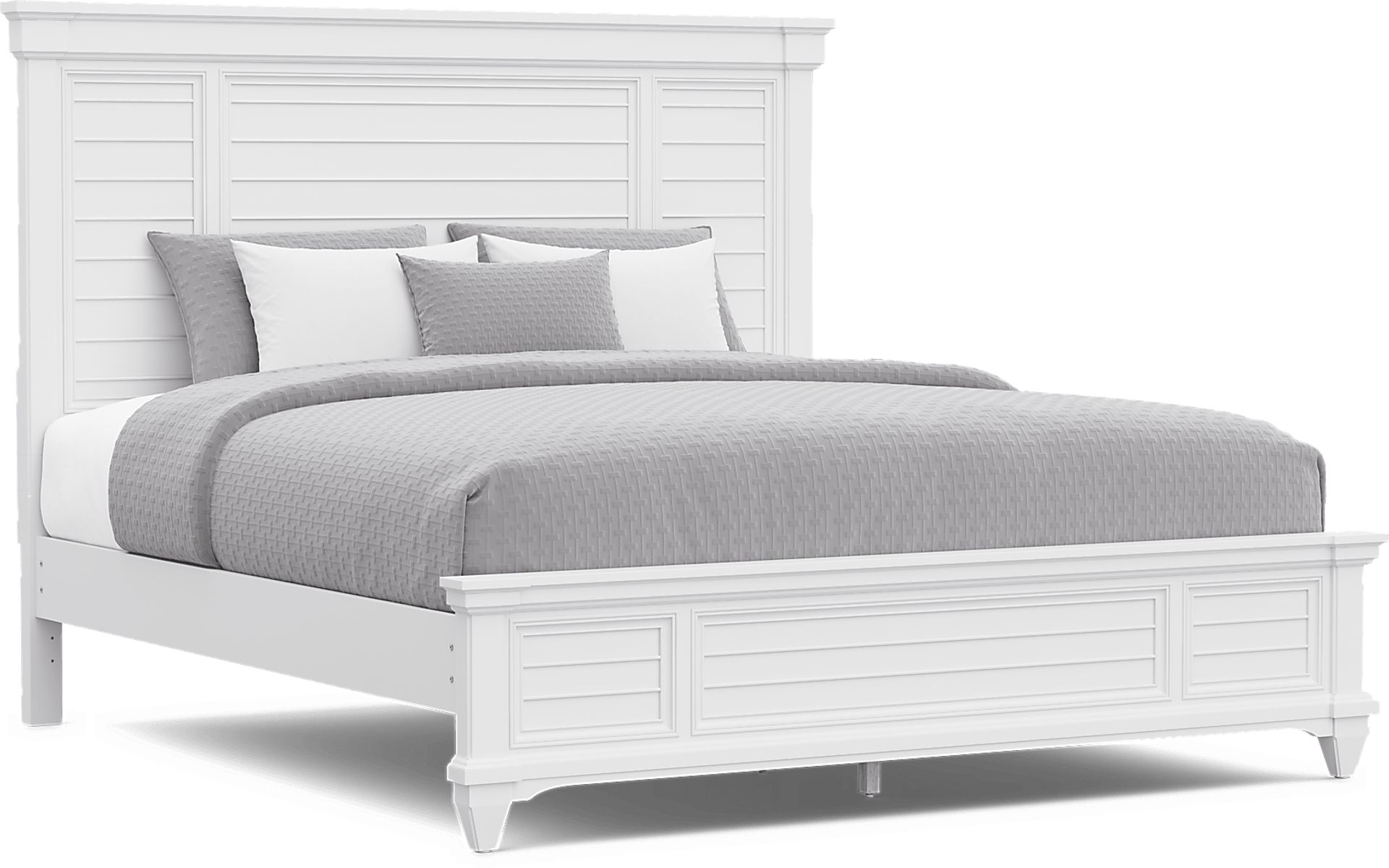 The distinctive shutter aesthetic is achieved through a combination of a panel headboard design and precision bead moulding. This architectural detail mimics the look of traditional window shutters, adding texture and visual interest. Combined with the tapered legs, these features create a sophisticated yet relaxed profile that fits a variety of casual interior styles.