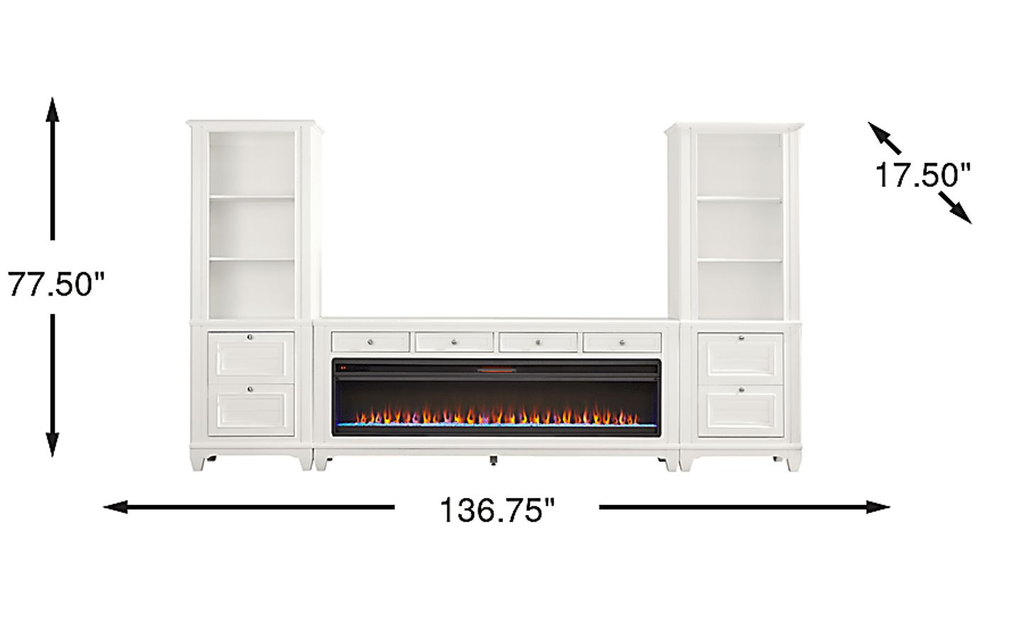 Measuring 136.75 inches in total width (nearly 11.5 feet), this unit is a grand statement piece best suited for spacious living rooms or open-concept floor plans. Its 77.5-inch height makes it an ideal fit for rooms with standard or high ceilings. We strongly recommend measuring your wall space carefully and clearing a wide pathway for delivery to ensure this substantial 4-piece set fits comfortably in your layout.