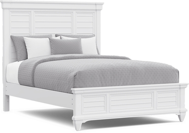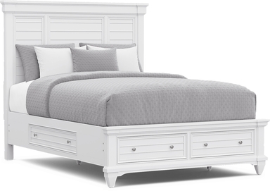 Create your own relaxing escape when you select the cottage style Hilton Head storage bedroom. This delightful collection with a classic panel bed features bead moulding for a coastal-inspired shutter-style aesthetic. Brushed nickel finished hardware provides a compelling contrast to the fresh white finish. Drawers built into the footboard provide room for extra linens and blankets. Mattress and foundation (if required) sold separately.