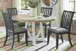 Hilton Head White 5 Pc Round Dining Room with Graphite Chairs