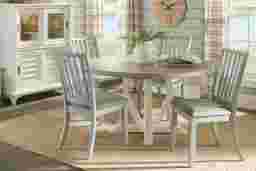 Gather for mealtime with the stylish and casual Hilton Head dining room. With a contemporary design highlighted by birch veneers in a white finish, this collection stands out in its simplicity. The gray tabletop adds a bit of contrast to this piece that helps it stand out. Four mint side chairs complete this dining set to ensure there's a fresh seat for everyone at the table.