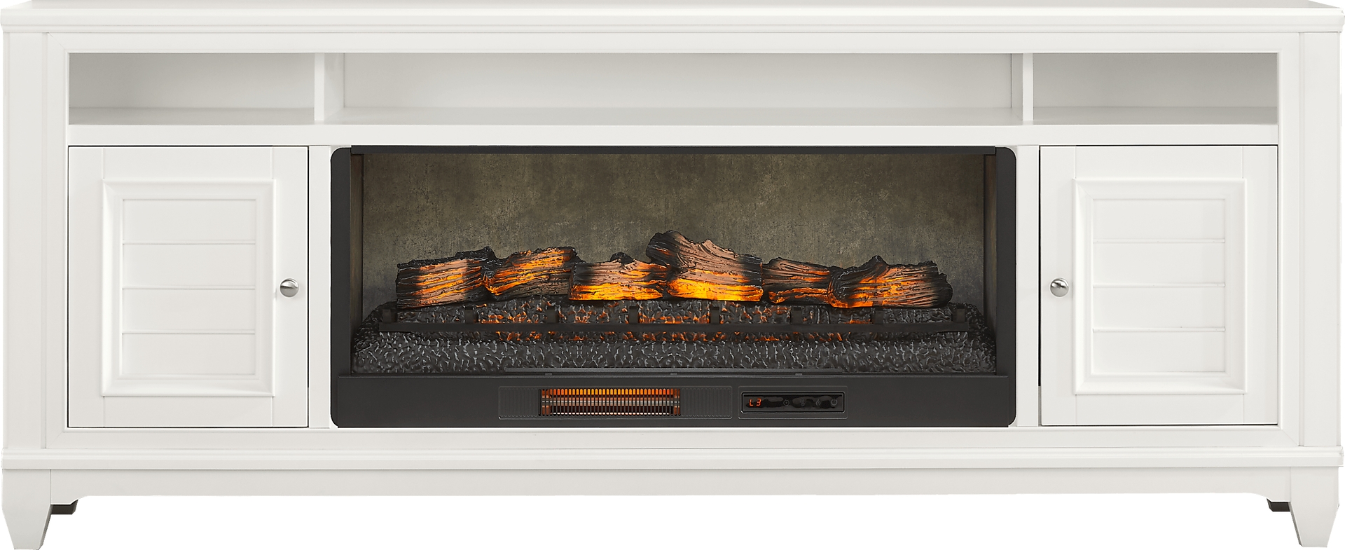 Hilton Head White 82 In. Console With Electric Log Fireplace