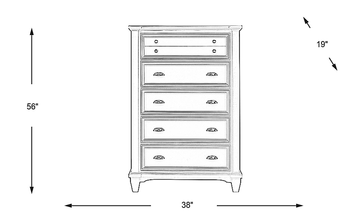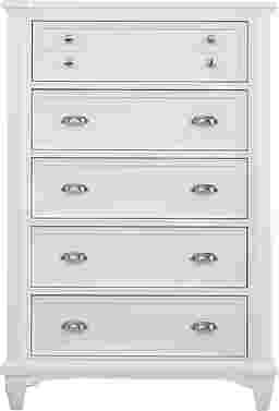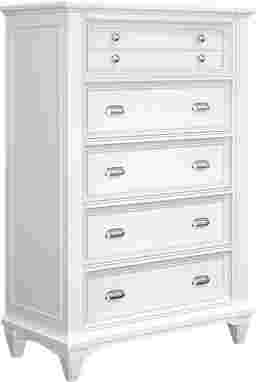 Classic cottage styling and a clean white finish make the Hilton Head chest an eye pleasing and practical addition to your bedroom. Five drawers are crafted with strong English and French dovetail construction and completed with brushed nickel hardware.