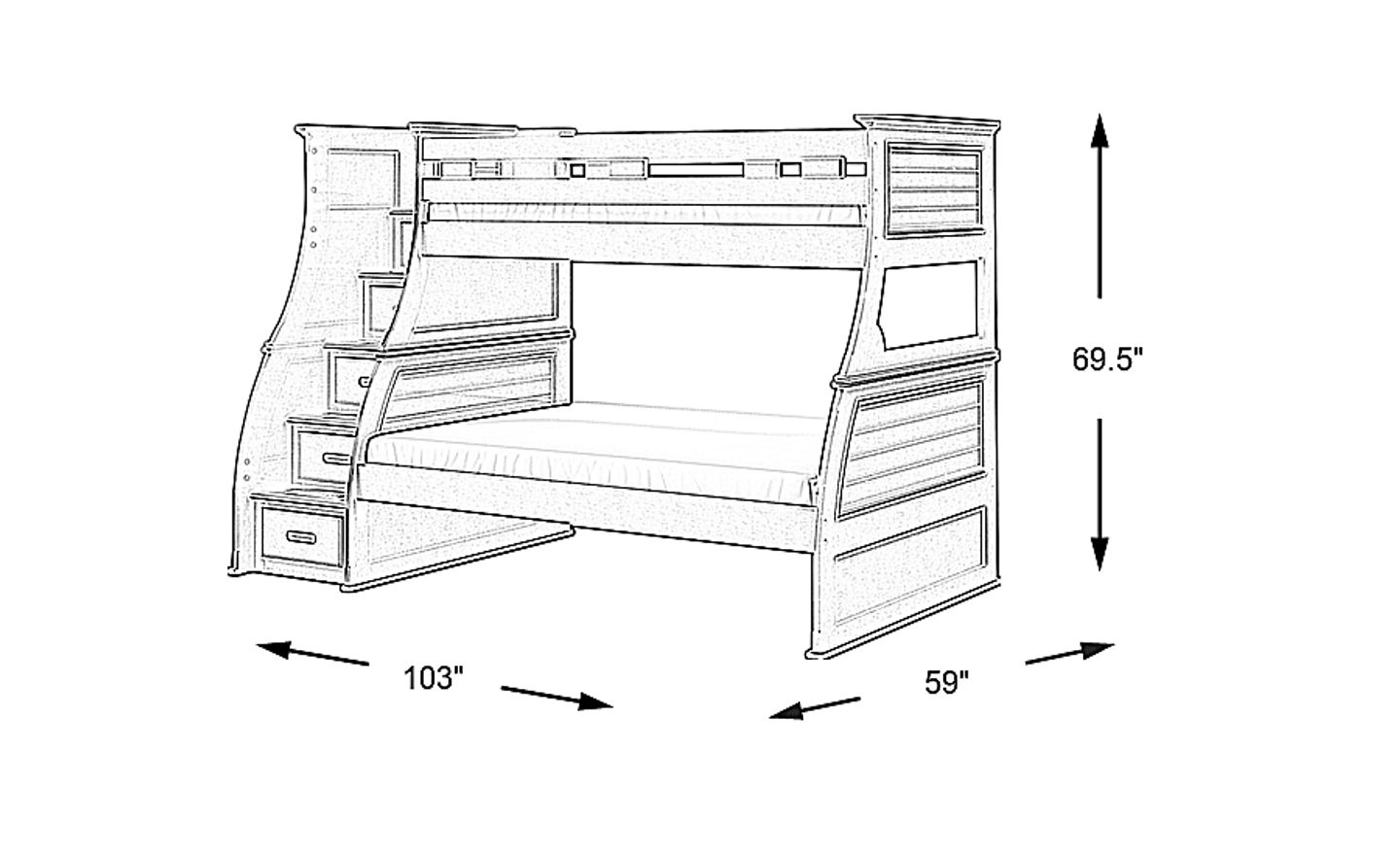 Complete your child's room with the cool and convenient Hilton Head bunk. With a classic design that features a unique shutter look and a beautiful white finish, this bunk is sure to be a hit. The bunk has a twin over full configuration provides ample space for two kids and an optional storage trundle can add an extra bed for sleepovers or additional storage. This bunk swaps the ladder for stylish steps that have built-in storage drawers. This product requires a bunkie board (sold separately) Mattress and foundation (if required) sold separately.