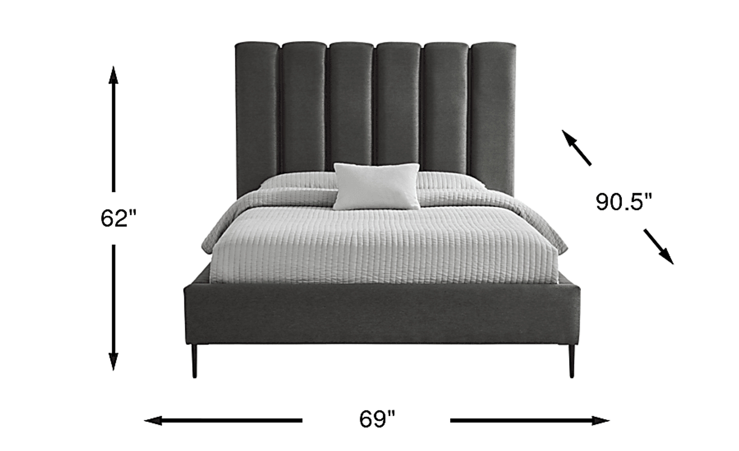 Clean lines and dramatic design elements in the Holloway bed add a fashionable look with depth and sophistication. Contemporary in style, this bed features a tall headboard with deep channeling for a unique texture design. Black metallic legs accentuate the smooth gray upholstery and enhances the overall elegance of the bed and its surroundings. Mattress and foundation (if required) sold separately.