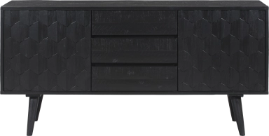A fusion of subtle contrasts and refined design, the Sambuca collection creates a stunning backdrop for unforgettable meals. The seat and back are upholstered in midnight blue fabric for upscale appeal. Curved black metal legs complement the color and geometric shape to create a bold yet balanced silhouette.