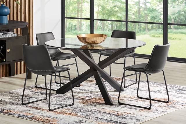Hollybrooke Black 5 Pc Round Dining Room with Gray Chairs