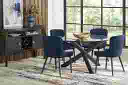 Hollybrooke Black 7 Pc Round Dining Room With Navy Chairs