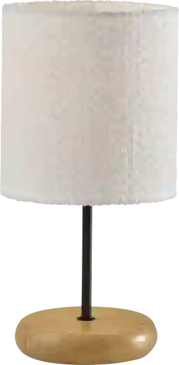 Illuminate your space with the charming Honorah Road Black Lamp. Crafted with a natural wood base, this lamp brings a touch of rustic elegance to any room. The white boucle fabric drum shade adds a cozy and inviting atmosphere, softly diffusing light. Standing at 16 inches tall, this lamp is perfect for smaller tables or desks. Whether placed in the living room, bedroom, or office, this lamp effortlessly enhances your decor with its understated beauty and practical functionality. Partial assembly may be required.
