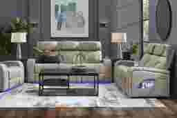 Horizon Ridge Beige Leather 7 Pc Living Room With Triple Power Reclining Sofa