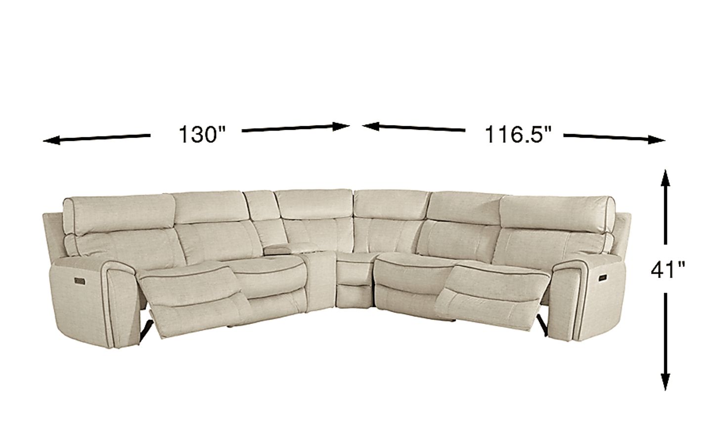 With plenty of room to relax, the Hosford sectional is ideal for family rooms. Complete with tailored welted seams and supremely soft upholstery, this is sure to be the go-to for game days and movie nights. Padded arms create a cozy place to rest your head, while two dual power reclining seats on each end of the sectional allow you to adjust the headrest and footrest at the touch of a button. The center console boasts lift top storage and two cupholders to keep refreshments within reach. Its comfortable transitional aesthetic is ideal for a variety of decor styles, while its neutral beige hue blends with an array of color palettes. 100% Polyester.