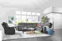 With plenty of room to relax, the Hosford sectional is ideal for family rooms. Complete with tailored welted seams and supremely soft upholstery, this is sure to be the go-to for game days and movie nights. Padded arms create a cozy place to rest your head, while three manual reclining seats provide even more relaxation. The center console boasts lift top storage and two cupholders to keep refreshments within reach. Its comfortable transitional aesthetic is ideal for a variety of decor styles, while its dark gray hue blends with an array of color palettes. Upholstery: 100% Polyester