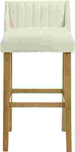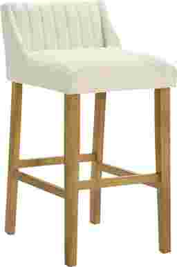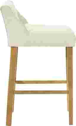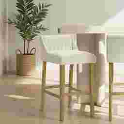 The Houndgold barstool blends tactile comfort with timeless simplicity, bringing a refined organic warmth to modern and transitional interiors alike. With its softly curved backrest, clean lines, and textured upholstery, Houndgold captures the balance between minimalist design and everyday comfort. The gently contoured seat and supportive backrest make it ideal for relaxed dining or casual entertaining without overwhelming your space. The white boucle performance fabric upholstery introduces soft, cozy texture while maintaining resilience against daily use, resistant to pilling and easy to care for, it delivers a tactile, upscale feel that complements the smooth wood finish. Houndgold's straightforward silhouette makes it incredibly versatile. Its armless profile tucks neatly beneath counters and islands, while the footrest ensures lasting comfort and stability. The solid leg design and smooth joinery lend strength and visual grounding, while the open lower frame keeps the look light a