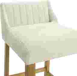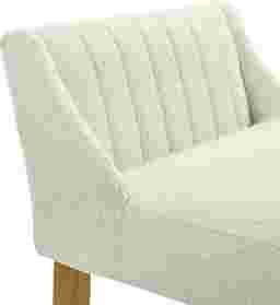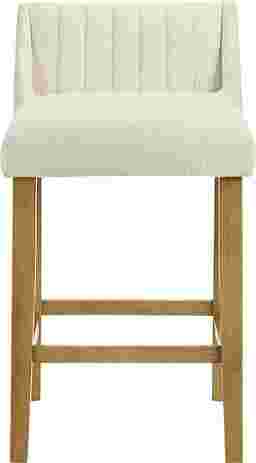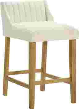 The Houndgold counter stool blends tactile comfort with timeless simplicity, bringing a refined organic warmth to modern and transitional interiors alike. With its softly curved backrest, clean lines, and textured upholstery, Houndgold captures the balance between minimalist design and everyday comfort. The gently contoured seat and supportive backrest make it ideal for relaxed dining or casual entertaining without overwhelming your space. The white boucle performance fabric upholstery introduces soft, cozy texture while maintaining resilience against daily use, resistant to pilling and easy to care for, it delivers a tactile, upscale feel that complements the smooth wood finish. Houndgold's straightforward silhouette makes it incredibly versatile. Its armless profile tucks neatly beneath counters and islands, while the footrest ensures lasting comfort and stability. The solid leg design and smooth joinery lend strength and visual grounding, while the open lower frame keeps the look l