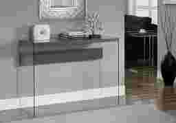 Enhance the look of your home with this trendy contemporary style Housely console table. The rectangular top is finished in a sophisticated glossy grey supported with sturdy and stylish tempered glass sides. This multi-functional console table has ample surface space to showcase decorative display items, a lamp, or simply as a chic accent piece in your living room, hallway or office space. Customer assembly required.